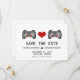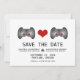 Quirky and totally geeky chic is this Cute Gamer Save the Date Announcement featuring a pair of video game controllers with red buttons. A heart in the middle connects the two controllers. This nerdy save the date invitation is perfect for the gaming couple. Easy to customize, simply add your wedding details. Click "Customize It" to find more personalization options.