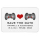 Quirky and totally geeky chic is this Cute Gamer Save the Date Magnet featuring a pair of video game controllers with red buttons. A heart in the middle connects the two controllers. This nerdy save the date magnet is perfect for the gaming couple. Easy to customize, simply add your wedding details. Click "Customize It" to find more personalization options.