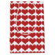 Simple and sweet Cute Hearts Pattern Gift Bag with a repeating pattern of small red hearts. Text may be added to this design to give it a personal touch.