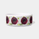 Ceramic pet food bowl for your cat or dog that features the photo image of a dark red Dahlia flower printed in a repeating pattern along with pet's name. Personalize pet bowl by replacing pet's name with your own. A lovely, floral design! Select your pet bowl size.