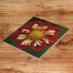 Ceramic tile that features the photo image of a colorful, red Collarette Dahlia flower with white, inner petals and large, yellow center on a dark green background. A lovely, floral design! Select your tile size. Makes a great kitchen trivet!