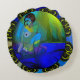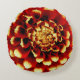original dahlia flower on one side and a blue lady art on the other side of a round pillow