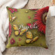 Red Daisies Gold Butterflies Personalized Name Throw Pillow