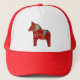The design on this hat is from a dala horse carved and painted by Julia Persson-Morrill