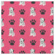 This dalmatian fabric is perfect for those who love this dog breed. The pattern comes in a dot formation with black paw prints and illustrated dalmatians. The background comes in red.