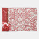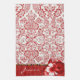 Modern and elegant red damask over white background and red and white flowers on the bottom. Optional monogram