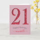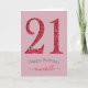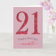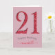 Modern 21st birthday card features faux red glitter number 16 on a damask rose background. Personalize with a name and message inside.