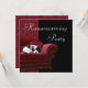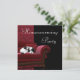 Red damask and red velvet sofa and black and white puppy dog housewarming party invitation.