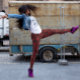 The dainty interlinked rosette design at the waist is truly unique. The poly-spandex makes for a nice fit and available in sizes 0-16. The printing is vibrant and eye-catching.
