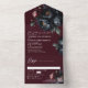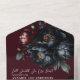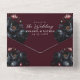 Set the stage for a hauntingly elegant event with this gothic all-in-one invitation. This luxurious floral wedding invitation features a bouquet of black and red peonies and blue berries against a red background. It is perfect for a dramatic and unforgettable celebration. They are ideal for lovers of dark romance and timeless allure.
