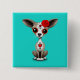 This adorable features a small chihuahua puppy decorated with Day of the Dead Sugar Skull patterns. A single rose appears on the chihuahuas head with a five point star sitting in the middle of it’s forehead. The tiny animal is decorated with swirls and dot patterns in the tradition of the Day of the Dead Sugar Skulls. This unique chihuahua design is an adorable way to celebrate the Day of the Dead.