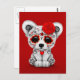 This cute design by artist Jeff Bartels features a white baby bear cub with large black eyes and a single rose on its head. Swirling lines and dot patterns decorate the small bear in the tradition of Day of the Dead sugar skulls. The cub is sitting down with its feet beside each other and is looking forward with a curious look. The over sized head and small body along with the details in the fur create a beautiful combination of a cartoon and realistic look. This unique and adorable Day of the Dead design is perfect for all animal lovers.