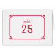 Simple and minimalist Deco Chic Table Number Card with a modern red art deco ornamental border. This classic and elegant table card is easy to customize with your wedding details. Find more personalization options by clicking Customize.