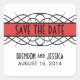 Elegant and classy Deco Flourish Save the Date Stickers featuring a fancy swirl red border. This stylish design is the perfect choice for announcing a vintage deco chic inspired wedding. Easy to customize, simply add your wedding details in the text fields provided. Click "Customize It" to find more personalization options.
