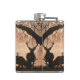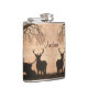 Red Deer Stags Flask with `Red Deer Evening Silhouette' an original artwork by `Cathy Sharpe' painted in Acrylics, A group of Stags graze in the evening fog.