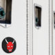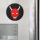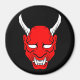 Round magnet with devious red devil face.