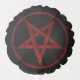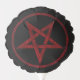 Red, inverted, textured pentagram in circle, on black background. Occult symbol. 666