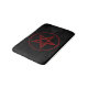 Red, inverted, textured pentagram in circle, on black background. Occult symbol. 666