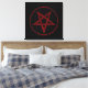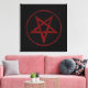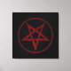 Red, inverted, textured pentagram in circle, on black background. Occult symbol. 666