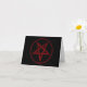 Red, inverted, textured pentagram in circle, on black background. Occult symbol. 666