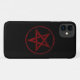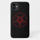 Red, inverted, textured pentagram in circle, on black background. Occult symbol. 666