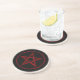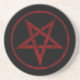 Red, inverted, textured pentagram in circle, on black background. Occult symbol. 666