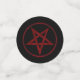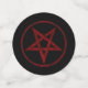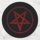 Red, inverted, textured pentagram in circle, on black background. Occult symbol. 666