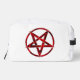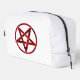 Red, inverted, textured pentagram in circle, on white background. Occult symbol. 666