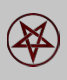 Red, inverted, textured pentagram in circle, on black background. Occult symbol. 666