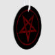 Red, inverted, textured pentagram in circle, on black background. Occult symbol. 666