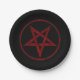 Red, inverted, textured pentagram in circle, on black background. Occult symbol. 666
