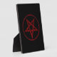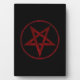 Red, inverted, textured pentagram in circle, on black background. Occult symbol. 666