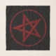 Red, inverted, textured pentagram in circle, on black background. Occult symbol. 666