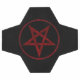 Red, inverted, textured pentagram in circle, on black background. Occult symbol. 666