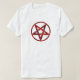 Red, inverted, textured pentagram in circle, on white background. Occult symbol. 666