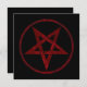 Red, inverted, textured pentagram in circle, on black background. Occult symbol. 666