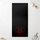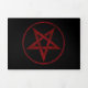 Red, inverted, textured pentagram in circle, on black background. Occult symbol. 666