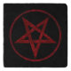 Red, inverted, textured pentagram in circle, on black background. Occult symbol. 666