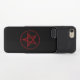 Red, inverted, textured pentagram in circle, on black background. Occult symbol. 666