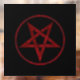Red, inverted, textured pentagram in circle, on black background. Occult symbol. 666