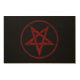 Red, inverted, textured pentagram in circle, on black background. Occult symbol. 666