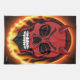 Red Devil Skull Skeleton with fire and flames background demon home decor kitchen towels.