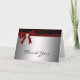 Elegant red diamond center bow red and silver thank you card. You choose your own font style and font color for the front text.
