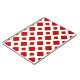 A bold, geometric pattern of large and small red diamonds on a white background. The white forms a lattice which separates the diamond shapes.