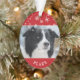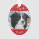 Cute Red Dog Photo and Name Snowflake Pattern Ornament. You can personalize it with your pet`s photo and the name. Insert your favorite photo. Beautiful white snowflakes overlay the photo. You can use this custom ornament for any pet. The ornament is in red color. A great keepsake for you or a gift for your family and friends.