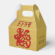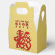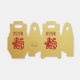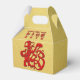 Golden customizable greeting favor bag with red dog papercut (and "drop shadow": black dog ) for Chinese New Year of the Dog 2018. All is customizable with double lettering and image to create drop shadow. Matching greeting postcard, greeting card and gift bags.