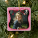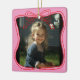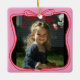 Capture your most cherished memories with this custom square photo ornament featuring a pink frame and festive red bow outline. Perfect for highlighting your favorite photo — whether it’s your child, baby, pet, or a special family holiday moment.