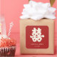 A contemporary double happiness design featuring the Chinese character "Double Happiness" in calligraphy ivory ecru over red background.