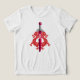 .Bright red twin dragons frame a central sword in a neon-inspired crest. This design stands out with bold color and strong fantasy presence.