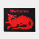 Dragon design smooth fleece doormat for indoors or covered outdoor areas. You can customise this doormat with any text of your choice. Should you require any help with customising then contact us through the message link on this page. Red dragon design doormat